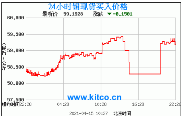 铜价格走势图今日最新铜价行情(2021年4月15日) 今日最新铜价:59.1928涨跌:-0.1501 备注:以上铜价格仅供参考,请以官方价格为准。