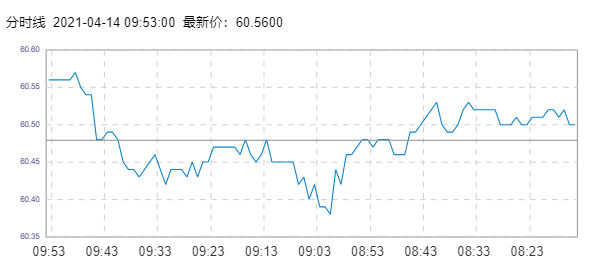 WTI原油价格实时(2021年4月14日) 名称 最新价 涨跌 涨跌幅% 开盘价 昨收价 最高价 最低价 WTI 60.54