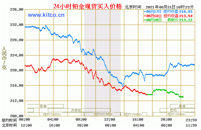 铂金价格走势图今日最新铂金行情(2021年6月21日) 今日最新铂金行情:213.12 备注:以上铂金价格仅供参考,请以官方价格为准。