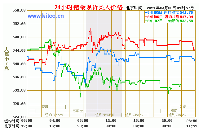 钯金价格走势图今日最新钯金行情(2021年4月8日) 今日最新钯金行情:533.58 备注:以上钯金价格仅供参考,请以官方价格为准。