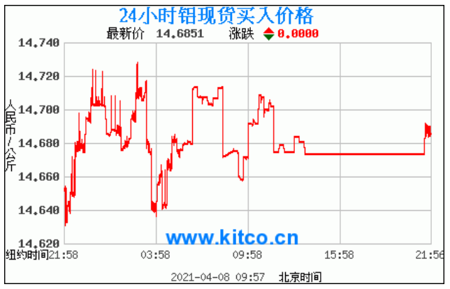 铝锭价格走势图今日最新铝锭行情(2021年4月8日) 今日最新铝锭行情:14.6851 备注:以上铝锭价格仅供参考,请以官方价格为准。