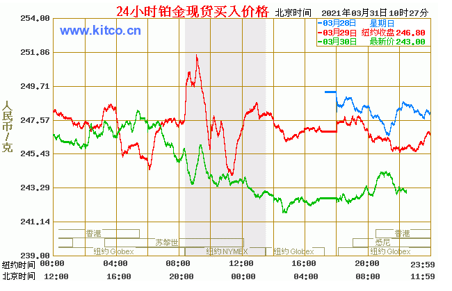 铂金价格走势图今日最新铂金行情(2021年3月31日) 今日最新铂金行情:243.88 备注:以上铂金价格仅供参考,请以官方价格为准。