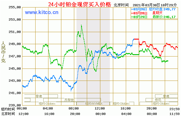 铂金价格走势图今日最新铂金行情(2021年3月30日) 今日最新铂金行情:246.17 备注:以上铂金价格仅供参考,请以官方价格为准。