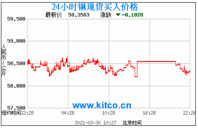 铜价格走势图今日最新铜价行情(2021年3月30日) 今日最新铜价:58.3583涨跌:-0.1028 备注:以上铜价格仅供参考,请以官方价格为准。