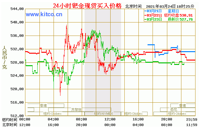 钯金价格走势图今日最新钯金行情(2021年3月24日) 今日最新钯金行情:527.76 备注:以上钯金价格仅供参考,请以官方价格为准。