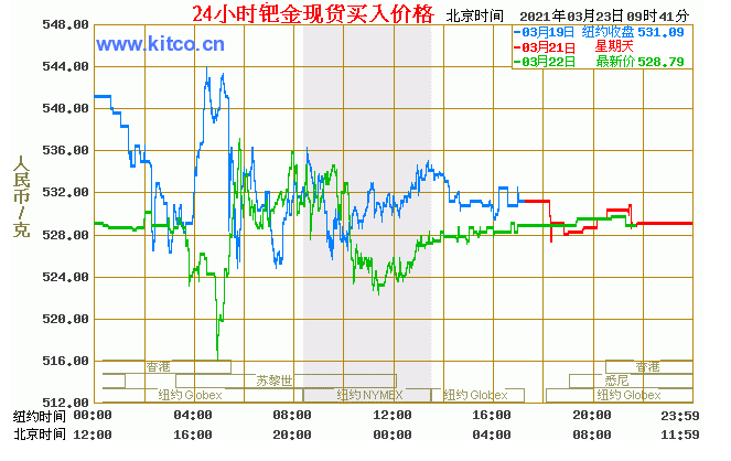 钯金价格走势图今日最新钯金行情(2021年3月23日) 今日最新钯金行情:528.79 备注:以上钯金价格仅供参考,请以官方价格为准。