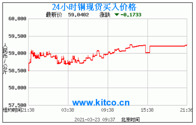 铜价格走势图今日最新铜价行情(2021年3月23日) 今日最新铜价:59.0402涨跌:-0.1733 备注:以上铜价格仅供参考,请以官方价格为准。