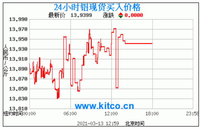 铝锭价格走势图今日最新铝锭行情(2021年3月15日) 今日最新铝锭行情:13.9399 备注:以上铝锭价格仅供参考,请以官方价格为准。
