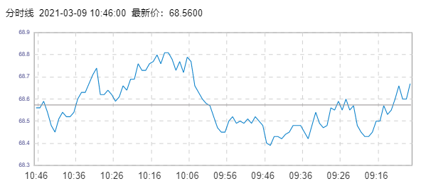布伦特原油价格实时(2021年3月9日) 名称 最新价 涨跌 涨跌幅% 开盘价 昨收价 最高价 最低价 布伦特 68.5