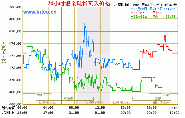 钯金价格走势图今日最新钯金行情(2021年3月9日) 今日最新钯金行情:468.71 备注:以上钯金价格仅供参考,请以官方价格为准。