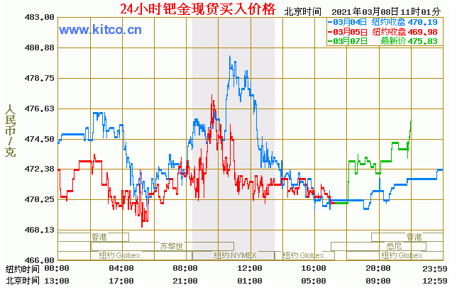 钯金价格走势图今日最新钯金行情(2021年3月8日) 今日最新钯金行情:475.83 备注:以上钯金价格仅供参考,请以官方价格为准。