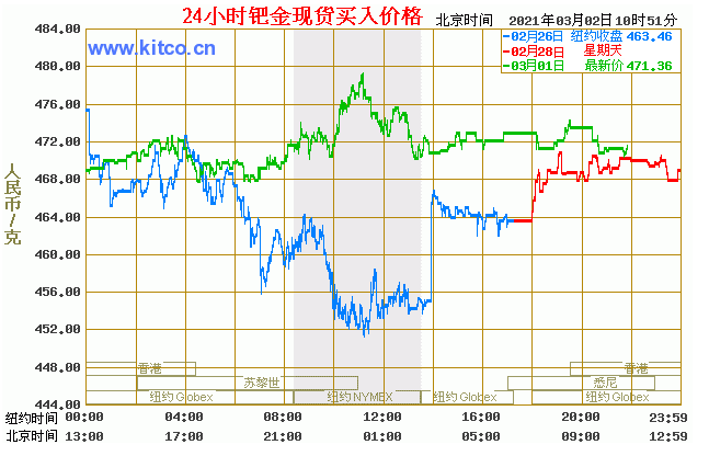 钯金价格走势图今日最新钯金行情(2021年3月2日) 今日最新钯金行情:471.36 备注:以上钯金价格仅供参考,请以官方价格为准。