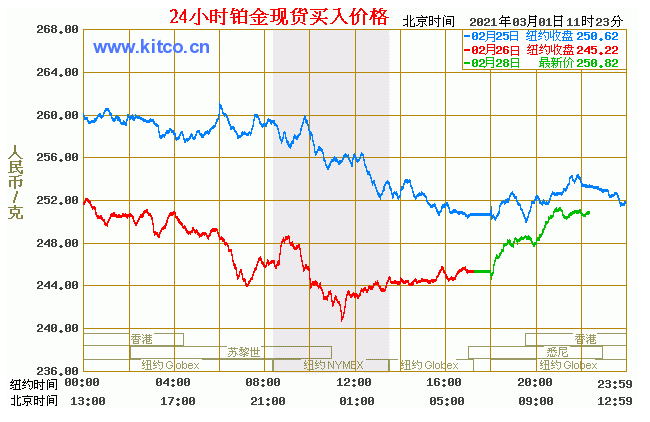 铂金价格走势图今日最新铂金行情(2021年3月1日) 今日最新铂金行情:250.82 备注:以上铂金价格仅供参考,请以官方价格为准。