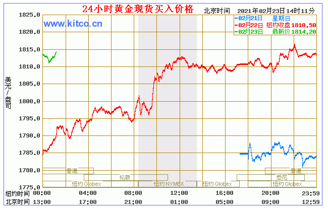 周二(2月23日)现货黄金小幅上涨,通胀预期及美元走软继续支撑金价。日内金价可能延续周一的涨势,但整体走势空方占优,投资者不宜过分追涨,激进者可以轻仓做反弹行情。 今日黄金价格走势图(2021年2月23日)