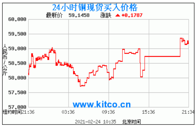 铜价格走势图今日最新铜价行情(2021年2月24日) 今日最新铜价:59.1458涨跌:0.1787 备注:以上铜价格仅供参考,请以官方价格为准。