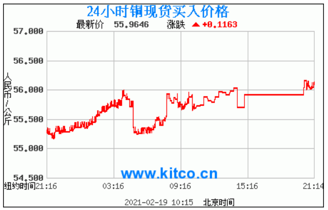 铜价格走势图今日最新铜价行情(2021年2月19日) 今日最新铜价:55.9646涨跌:0.1163 备注:以上铜价格仅供参考,请以官方价格为准。