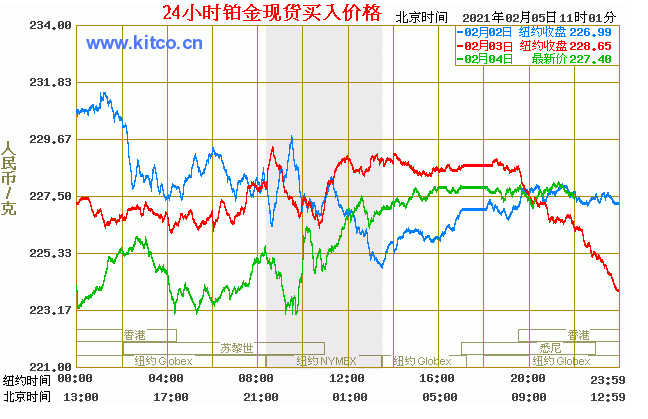 铂金价格走势图今日最新铂金行情(2021年2月5日) 今日最新铂金行情:227.40 备注:以上铂金价格仅供参考,请以官方价格为准。