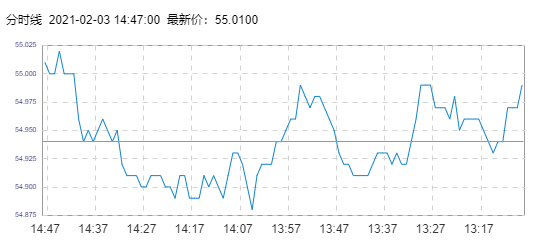 WTI原油价格实时(2021年2月3日) 名称 最新价 涨跌 涨跌幅% 开盘价 昨收价 最高价 最低价 WTI 55.00