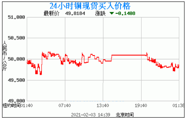铜价格走势图今日最新铜价行情(2021年2月3日) 今日最新铜价:49.8184涨跌:-0.1408 备注:以上铜价格仅供参考,请以官方价格为准。