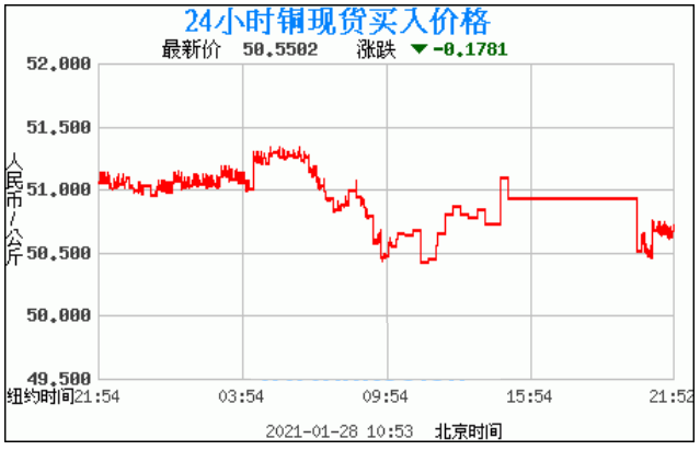 铜价格走势图今日最新铜价行情(2021年1月28日) 今日最新铜价:50.5502涨跌:-0.1781 备注:以上铜价格仅供参考,请以官方价格为准。