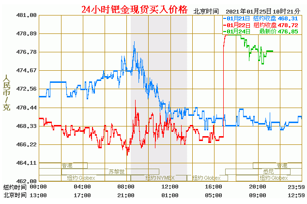 钯金价格走势图今日最新钯金行情(2021年1月25日) 今日最新钯金行情:476.85 备注:以上钯金价格仅供参考,请以官方价格为准。