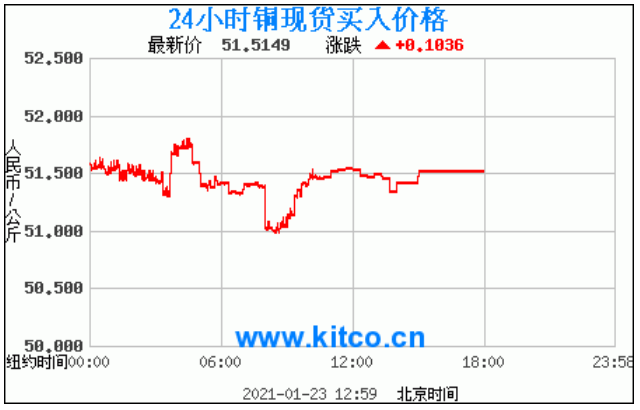 铜价格走势图今日最新铜价行情(2021年1月25日) 今日最新铜价:51.5149涨跌:0.1036 备注:以上铜价格仅供参考,请以官方价格为准。