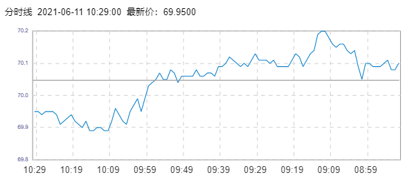 WTI原油价格实时(2021年6月11日) 名称 最新价 涨跌 涨跌幅% 开盘价 昨收价 最高价 最低价 WTI 69.94