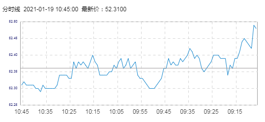WTI原油价格实时(2021年1月19日) 名称 最新价 涨跌 涨跌幅% 开盘价 昨收价 最高价 最低价 WTI 52.32