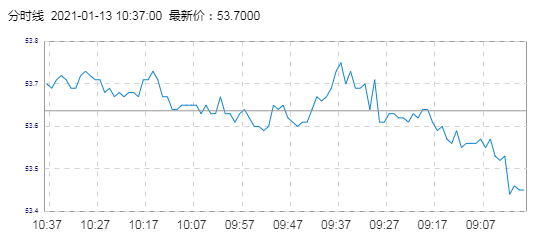 国际原油价格实时走势图(2021年1月13日) WTI原油走势图 布伦特原油走势图