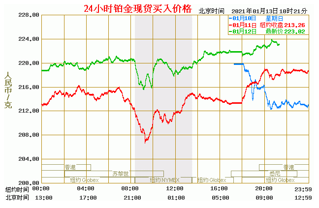 铂金价格走势图今日最新铂金行情(2021年1月13日) 今日最新铂金行情:223.02 备注:以上铂金价格仅供参考,请以官方价格为准。