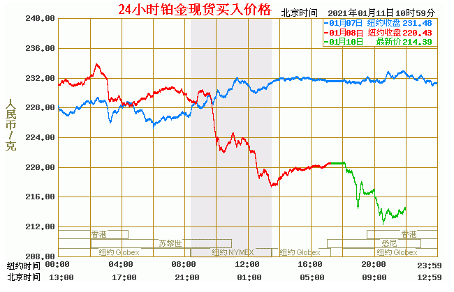 铂金价格走势图今日最新铂金行情(2021年1月11日) 今日最新铂金行情:214.39 备注:以上铂金价格仅供参考,请以官方价格为准。
