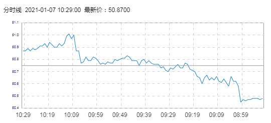 国际原油价格实时走势图(2021年1月7日) WTI原油走势图 布伦特原油走势图
