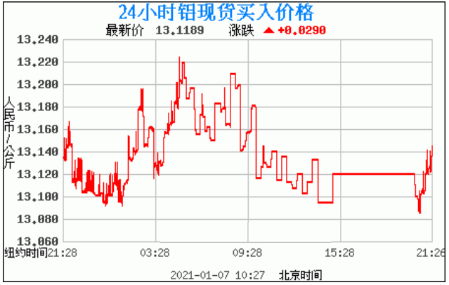 铝锭价格走势图今日最新铝锭行情(2021年1月7日) 今日最新铝锭行情:13.1189 备注:以上铝锭价格仅供参考,请以官方价格为准。