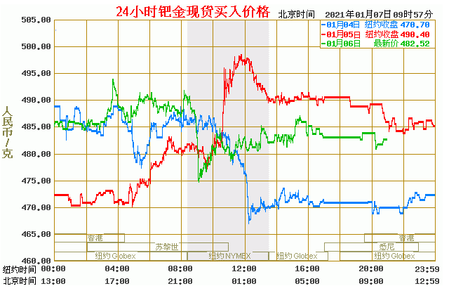 钯金价格走势图今日最新钯金行情(2021年1月7日) 今日最新钯金行情:482.52 备注:以上钯金价格仅供参考,请以官方价格为准。