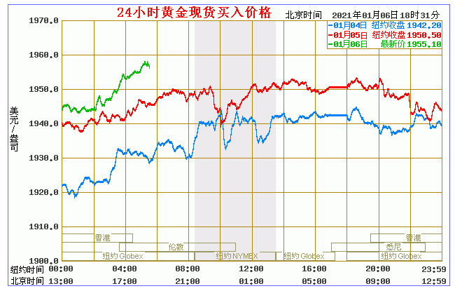(2021年1月6日)国际黄金价格表 名称 最新价 涨跌 涨跌幅% 买价 卖价 开盘价 昨收价 最高价 最低价