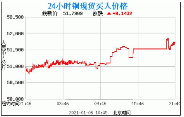 铜价格走势图今日最新铜价行情(2021年1月6日) 今日最新铜价:51.7909涨跌:0.1432 备注:以上铜价格仅供参考,请以官方价格为准。