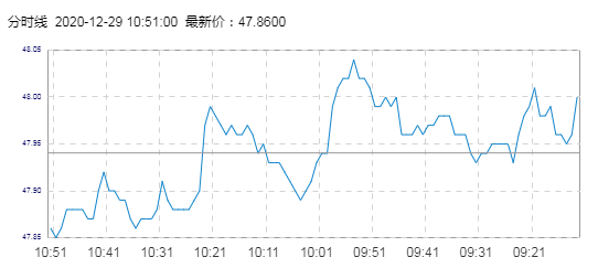 WTI原油价格实时(2020年12月29日) 名称 最新价 涨跌 涨跌幅% 开盘价 昨收价 最高价 最低价 WTI 47.86