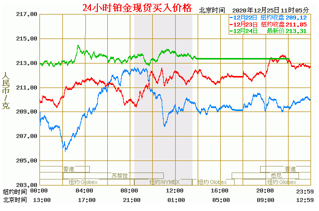 铂金价格走势图今日最新铂金行情(2020年12月25日) 今日最新铂金行情:213.31 备注:以上铂金价格仅供参考,请以官方价格为准。