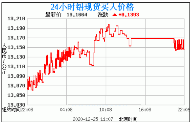 铝锭价格走势图今日最新铝锭行情(2020年12月25日) 今日最新铝锭行情:13.1664 备注:以上铝锭价格仅供参考,请以官方价格为准。