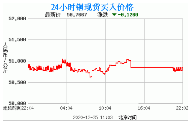 铜价格走势图今日最新铜价行情(2020年12月25日) 今日最新铜价:50.7667涨跌:-0.1260 备注:以上铜价格仅供参考,请以官方价格为准。
