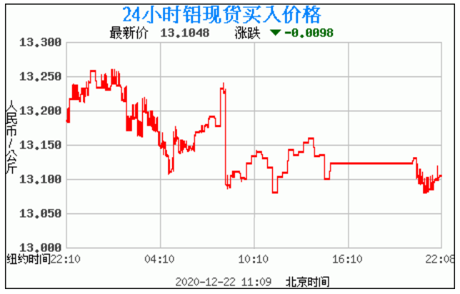 铝锭价格走势图今日最新铝锭行情(2020年12月22日) 今日最新铝锭行情:13.1048 备注:以上铝锭价格仅供参考,请以官方价格为准。