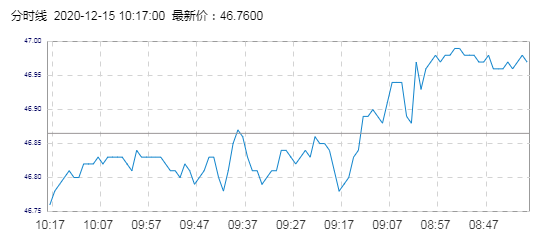 WTI原油价格实时(2020年12月15日) 名称 最新价 涨跌 涨跌幅% 开盘价 昨收价 最高价 最低价 WTI 46.76