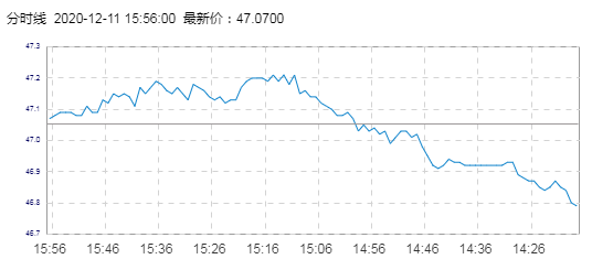 WTI原油价格实时(2020年12月11日) 名称 最新价 涨跌 涨跌幅% 开盘价 昨收价 最高价 最低价 WTI 47.06