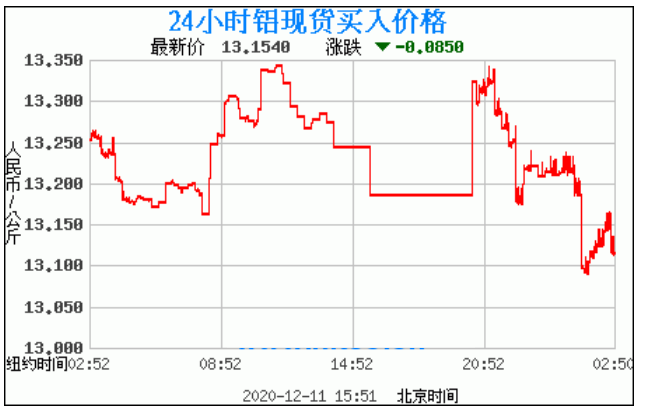 铝锭价格走势图今日最新铝锭行情(2020年12月11日) 今日最新铝锭行情:13.1540 备注:以上铝锭价格仅供参考,请以官方价格为准。