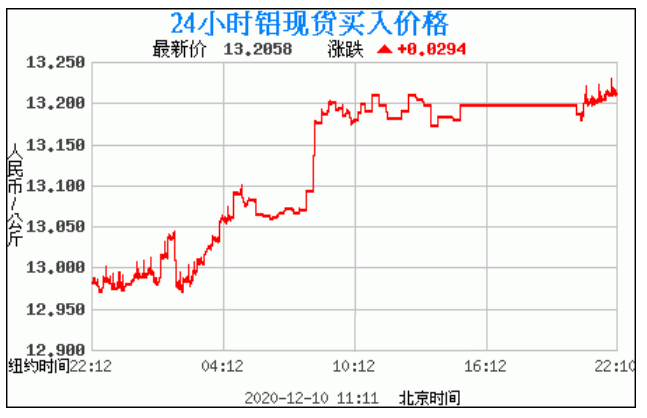 铝锭价格走势图今日最新铝锭行情(2020年12月10日) 今日最新铝锭行情:13.2058 备注:以上铝锭价格仅供参考,请以官方价格为准。