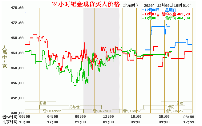 钯金价格走势图今日最新钯金行情(2020年12月9日) 今日最新钯金行情:464.34 备注:以上钯金价格仅供参考,请以官方价格为准。