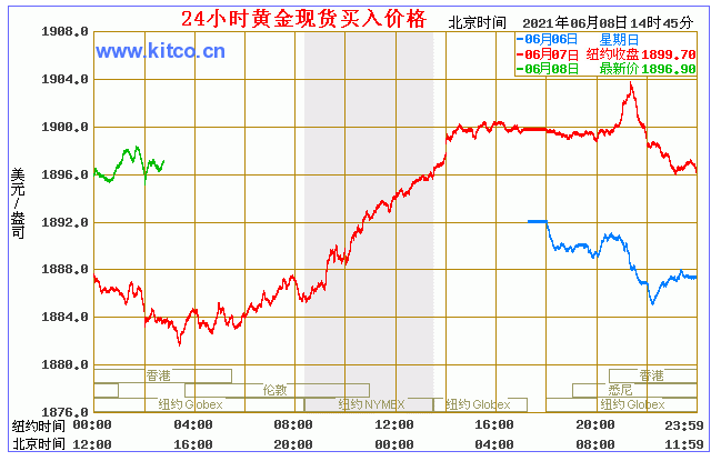 周二(6月8日)亚洲时段,现货黄金持稳于1899附近。周一(6月7日)黄金小幅上涨,因美元指数小幅走低。不过美联储隔夜逆回购再创记录,DR持仓也有所减少,这些限制了金价的升势。在周四CI数据出炉前,多头入场可能会相当谨慎。 今日黄金价格走势图(2021年6月8日)