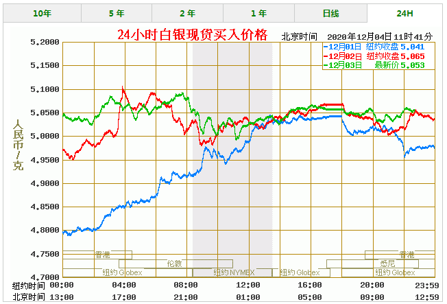 纸白银价格走势图实时(2020年12月4日) 名称 最新价 最高价 最低价 买入价 卖出价 纸白银(美元) 23.99 24.05