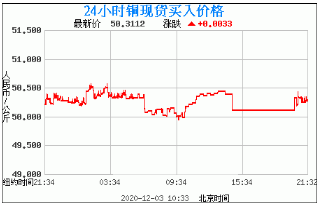 铜价格走势图今日最新铜价行情(2020年12月3日) 今日最新铜价:50.3112涨跌:0.0033 备注:以上铜价格仅供参考,请以官方价格为准。