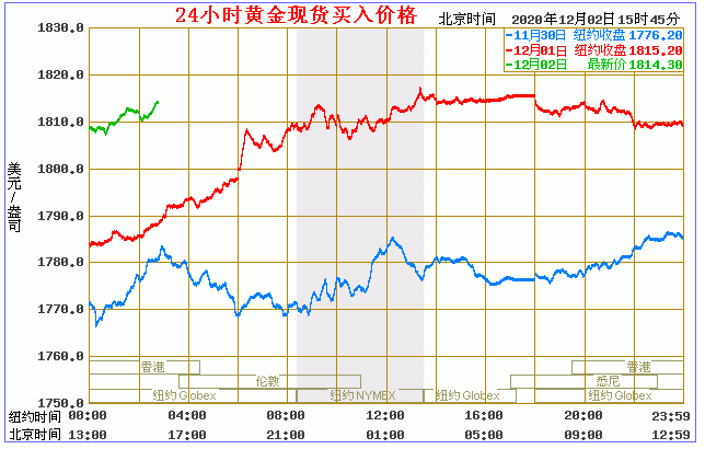 (2020年12月2日)国际黄金价格表 名称 最新价 涨跌 涨跌幅% 买价 卖价 开盘价 昨收价 最高价 最低价